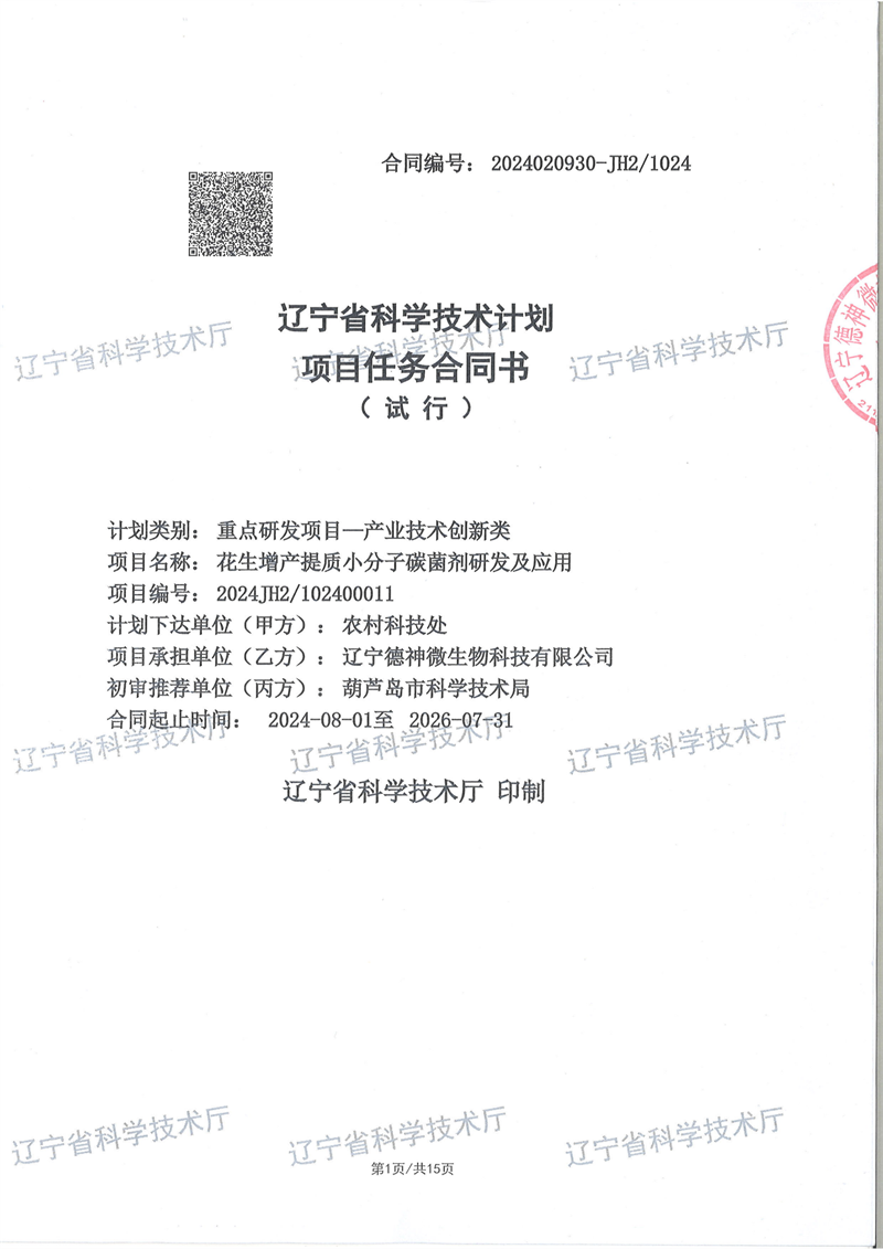 辽宁省科技计划:花生增产提质小分子碳菌剂研发及应用