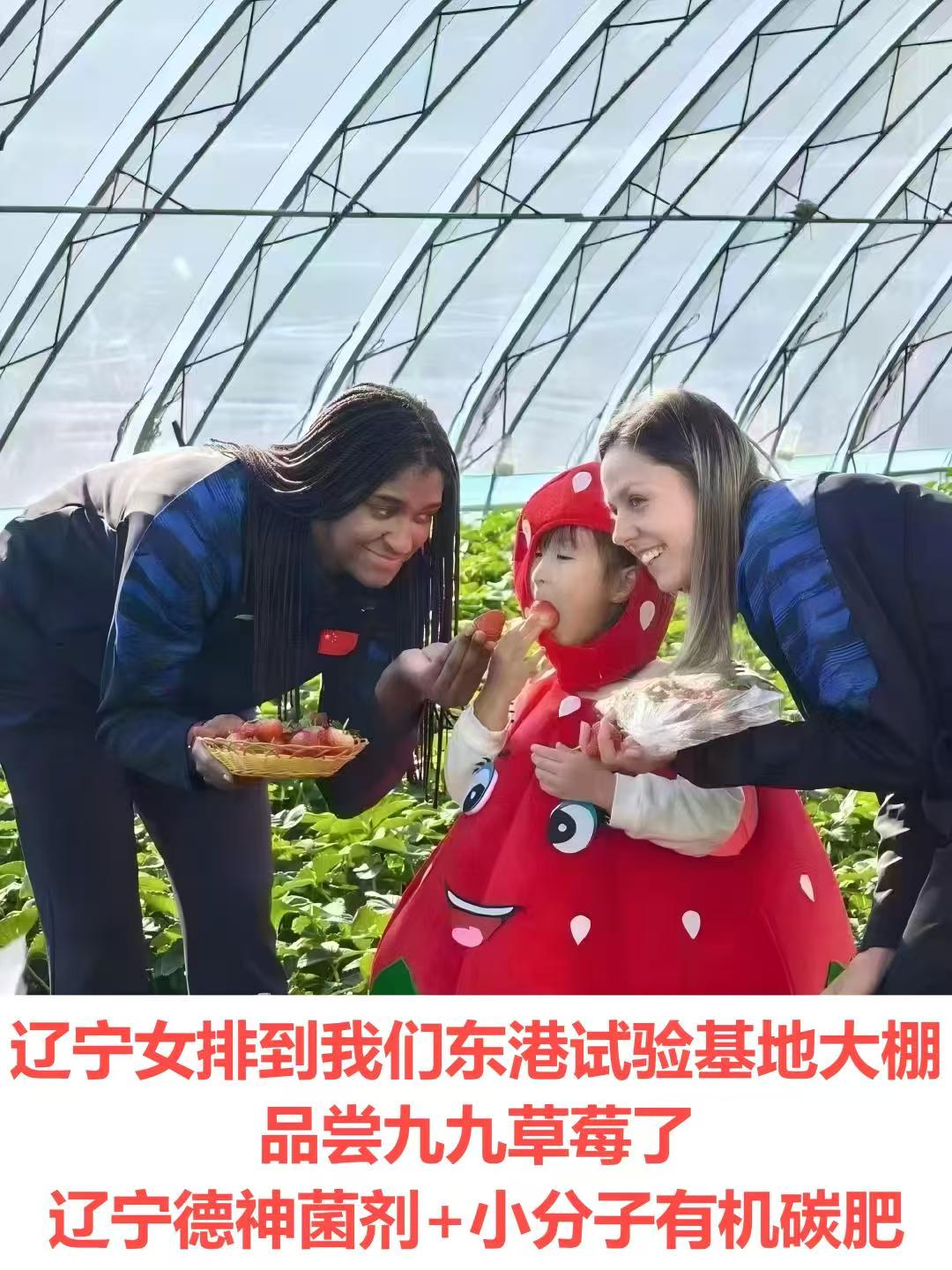 辽宁女排到东港试验基地大棚品尝九九草莓